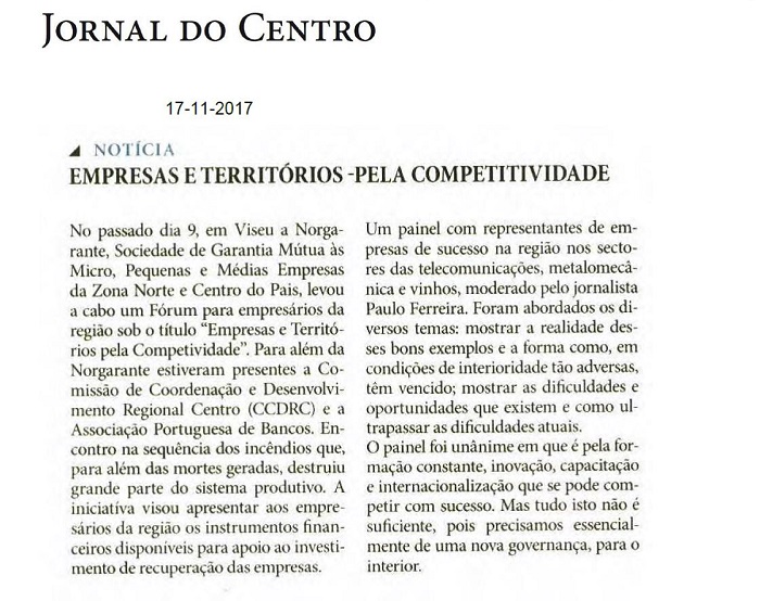 Ficheiro Relacionado:Diário de Viseu - Fóruns Norgarante: Internacionalizar, Inovar e Capacitar para competir (4.36 MB)